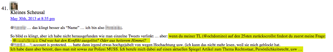 (Der Twitter-Screenshot liegt mir auch unverpixelt vor, und der untere Screenshot ist aus dem Webarchiv von kleines-scheusal.de)